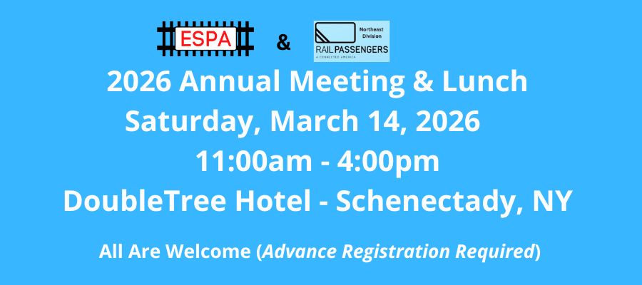 The Empire State Passengers Association (ESPA) is a volunteer network of citizens, founded in 1980, constantly working to improve and expand Amtrak and public transit services across New York State, from Montauk to Niagara Falls and Dunkirk to Plattsburgh.