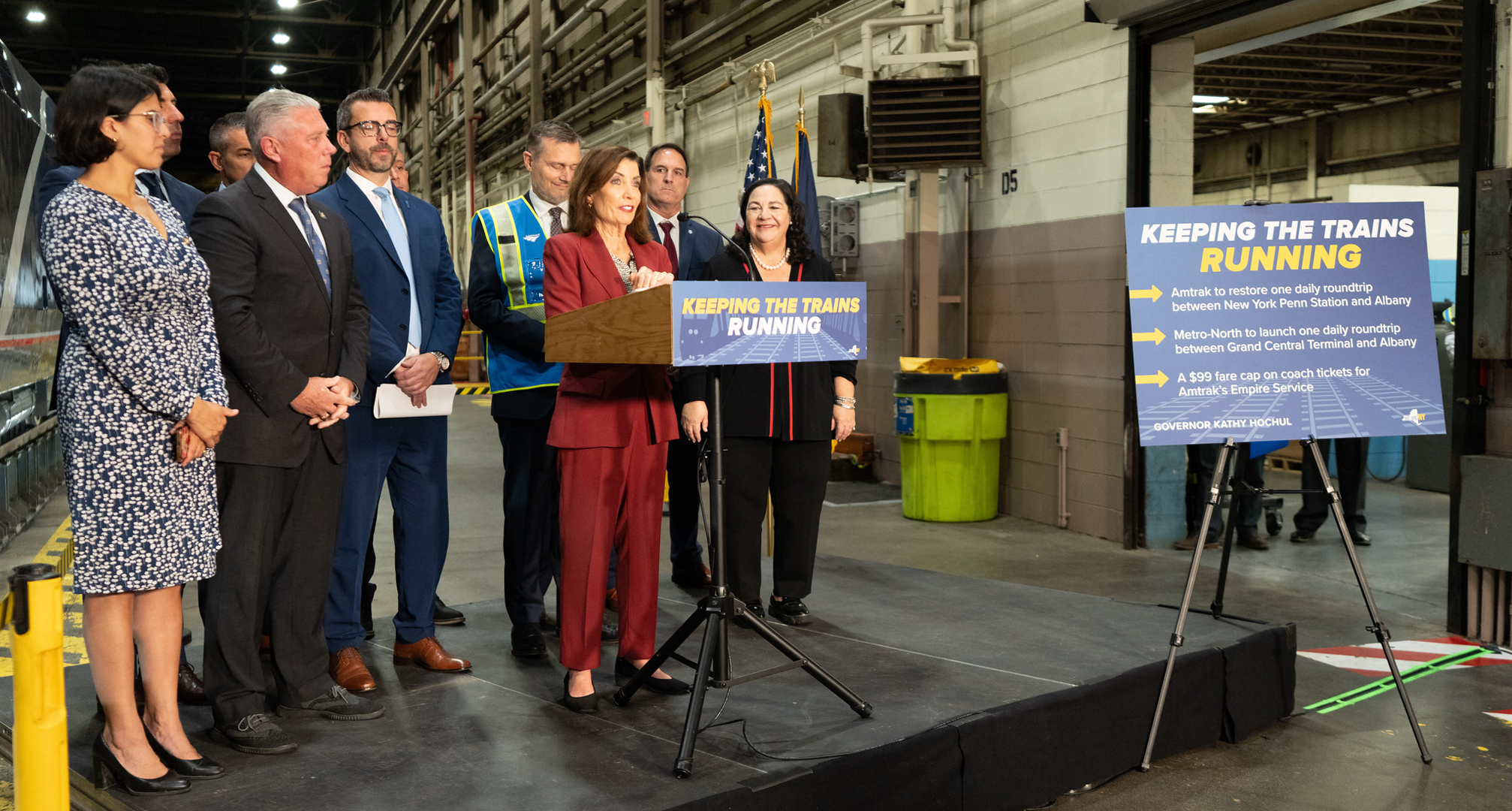 Media Kit photo from press event on October 20, 2025 at the Rensselaer for the announcement of the now canceled extenstion of Metro-North service to Albany. Amtrak's going work on the rebuilding of the East River Tunnels had led to curtailment of Amtrak's passenger rail service (supported by the State of New York) between Albany and Penn Station.